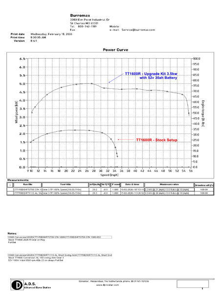Do you want your TT1600R to go up to 48+ mph and crazy fast acceleration? This performance upgrade kit is just what you need. This upgrade is fully bolt-on plug-n-play. The upgrade kit will include a 3.5Kw (6 Kw Peak) Motor, a lightweight aluminum +120mm over stock extended swing arm, 230mm performance shock, drive chain, 100A controller with wiring harness, programmable three-speed throttle, kickstand, hardware, 52v 30a 100A BMS Battery, and charger. This kit utilizes your stock TT1600R rear brake line, rear brake caliper, rear brake disc, and rotor. Fits all TT1600R.